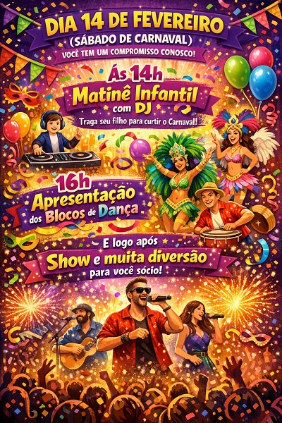 O clima de Carnaval já vai tomar conta do Ipê Campestre Clube de Guapé! No dia 15 de fevereiro,