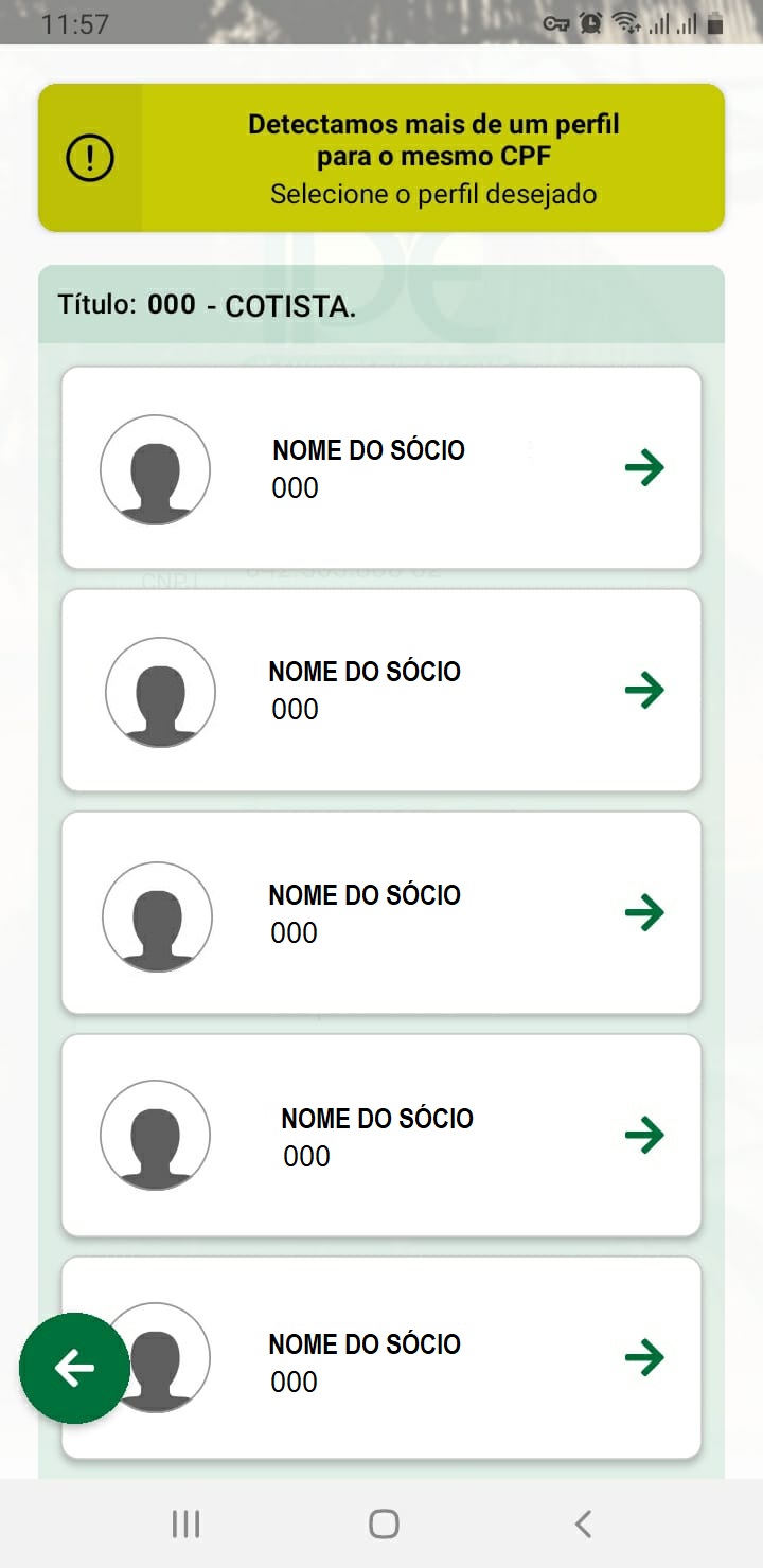 “Detectamos mais de um perfil para o mesmo CPF. Selecione o perfil desejado.”