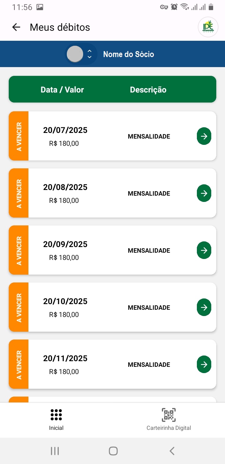 Carteirinha Digital: Acesse sua carteirinha para entrada no clube e eventos.